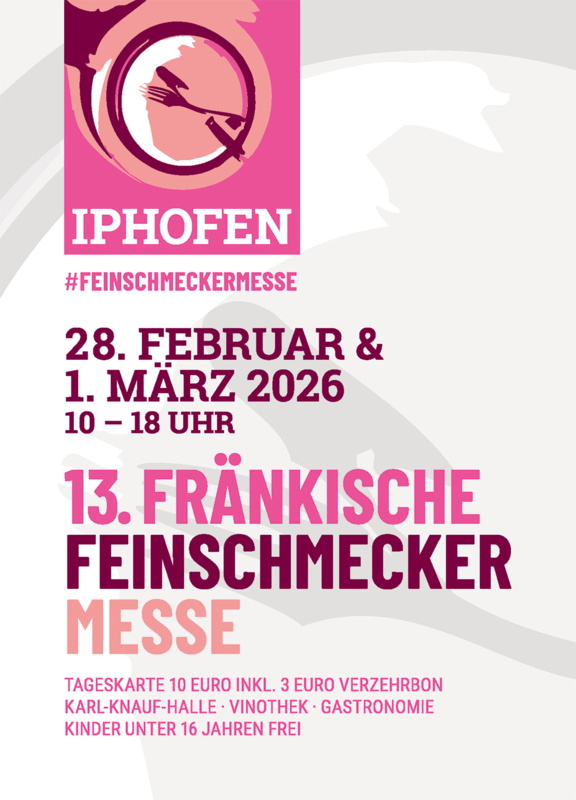 Wir freuen uns schon über euren Besuch anlässlich der 13. Fränkischen Feinschmeckermesse am 28.2. - 1.3.2026 in Iphofen. Wie wär´s, nach einem ausgiebigem Messebummel in der Karl-Knauf-Halle, einzukehren in unserer Vinothek zu fränkischem Weingenuss.