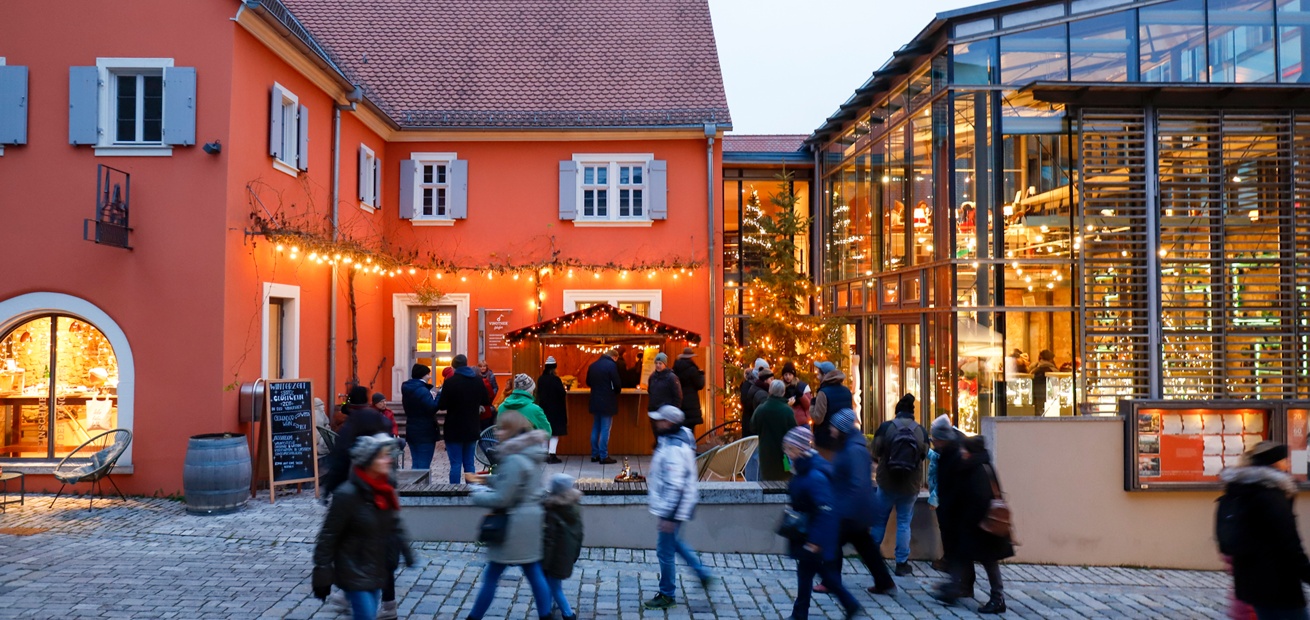 Weihnachtlicher Zauber mit liebevollen und individuellen Ständen in der Vinothek und gemütlicher Atmosphäre mit Glühwein, Punsch und Waffeln auf unserer Terrasse und innen erwartet Sie Weihnachtliches im Gewölbekeller und Glaspavillon.